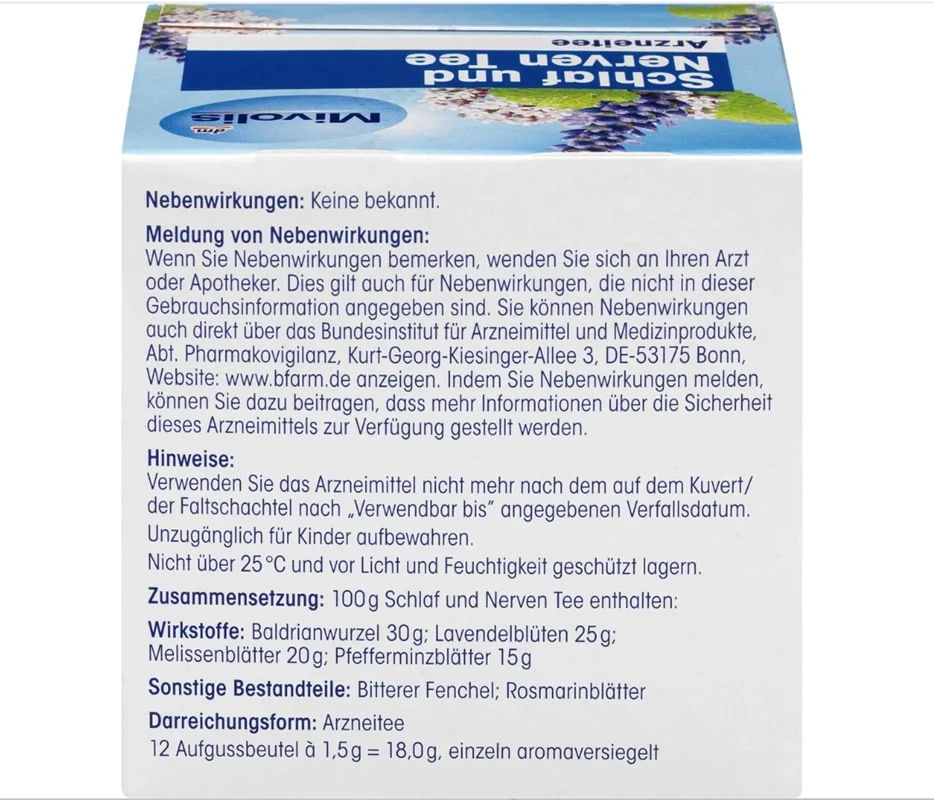 چای دارویی، چای خواب و اعصاب (12 کیسه ای)، 18 گرم , Mivolis Arzneitee, Schlaf & Nerven Tee (12 Beutel), 18 g