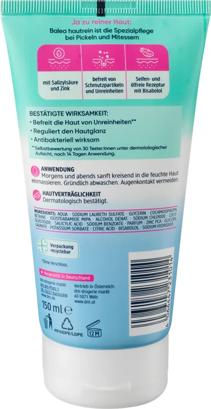 ژل SOS ضد جوش Balea Hautrein کمک فوری برای جوش ها و جوش های سر سیاه است. اسید سالیسیلیک و روی می توانند به مبارزه با باکتری های مولد جوش کمک کنند. علاوه بر این، پانتنول و آلانتوئین با خواص تسکین دهنده پوست خود را تحت تاثیر قرار می دهند. فرمول بدون عطر می تواند تضمین کند که جوش ها به سرعت ناپدید می شوند.
