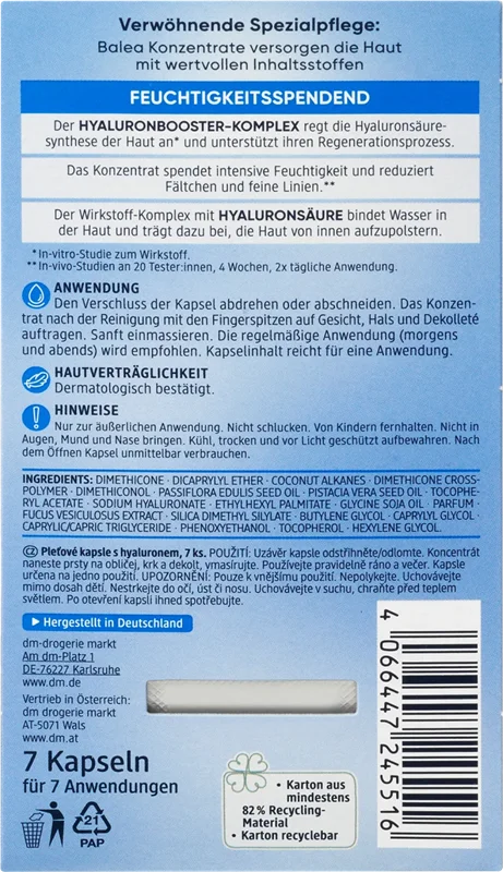 کنسانتره هیالورونیک Balea رطوبت شدیدی را فراهم می کند و چین و چروک و خطوط ریز را کاهش می دهد. علاوه بر این، مجموعه مواد فعال با اسید هیالورونیک، آب را در پوست می چسباند و به حجیم شدن پوست از داخل کمک می کند. برای داشتن پوستی شاداب، صاف و ابریشمی و نرم.